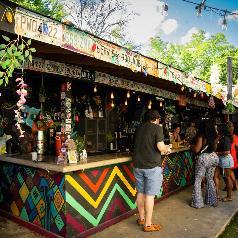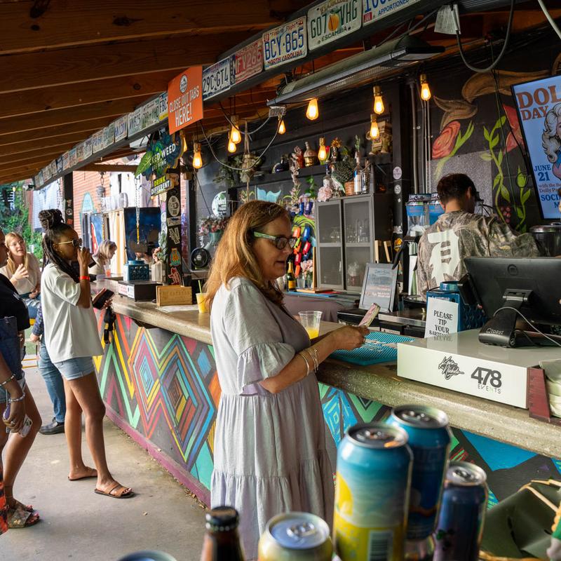 Our indoor Boom Boom Karaoke Room offers a fun, eclectic space for groups up to 40 people. Perfect for birthday parties, small reunions, or just book as a karaoke room experience for you and 30 of your friends! Rental fee $250 for up to 4 hours. Add on a Mimosa Bar or pre-stocked barge cooler for your gathering; inquire about pricing and availability at societygardenmacon@gmail.com.