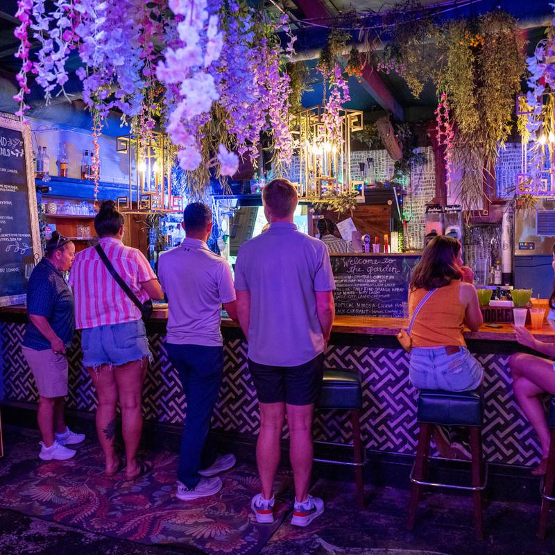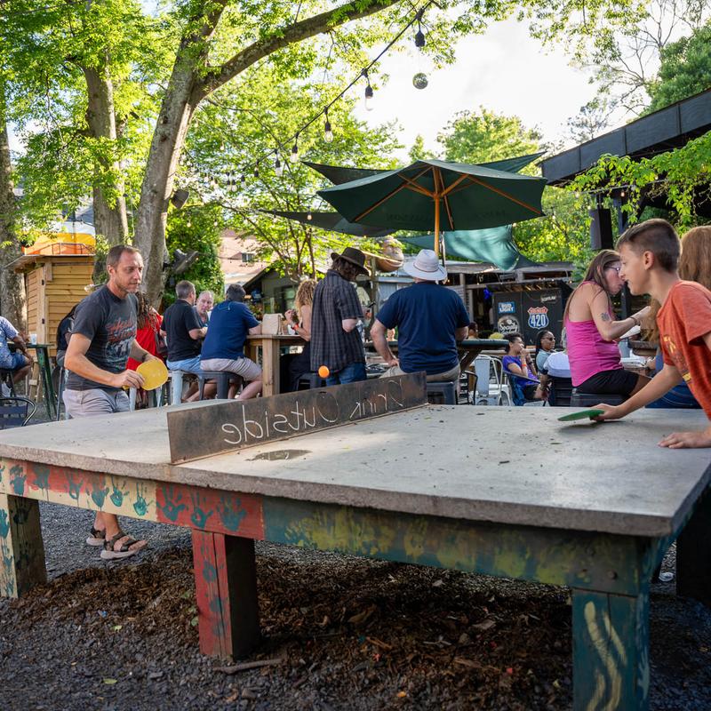 Our Cocktail Lounge offers swanky, cozy indoor space to mingle with friends while enjoying our artfully crafted cocktails, and large selection of bourbon, scotch and tequila. With ping-pong and corn hole, live music, a vintage metal slide, giant carved trolls; Society Garden has become Macon’s Midtown Destination.